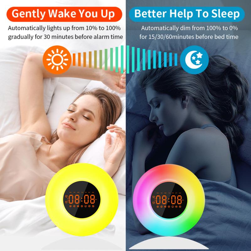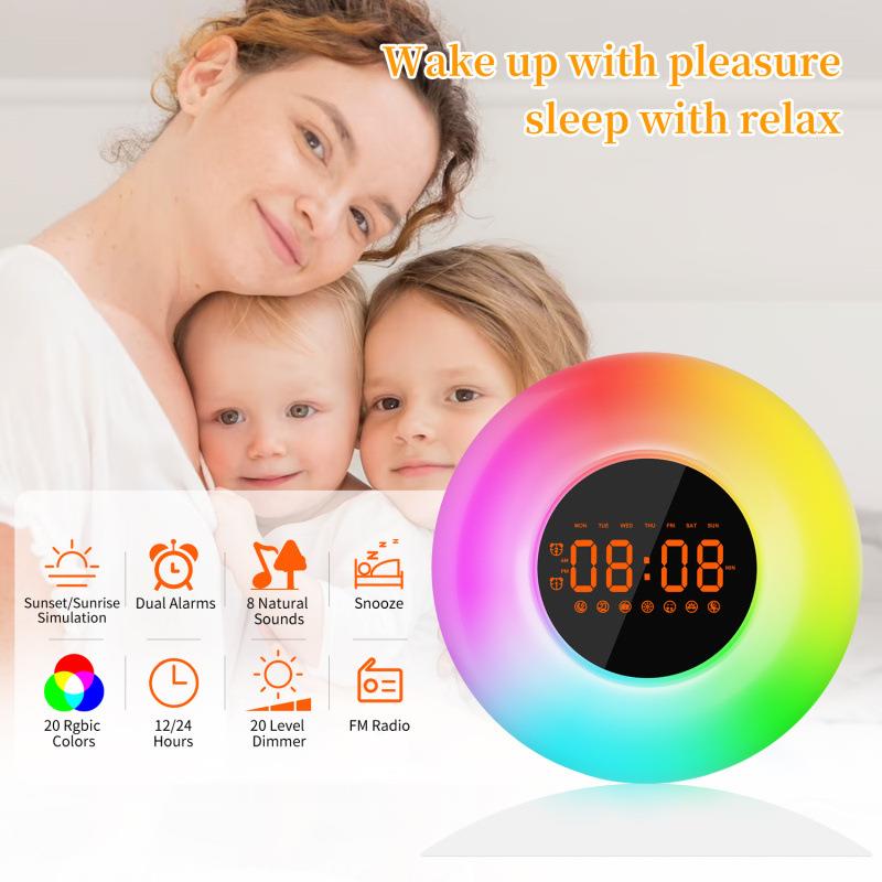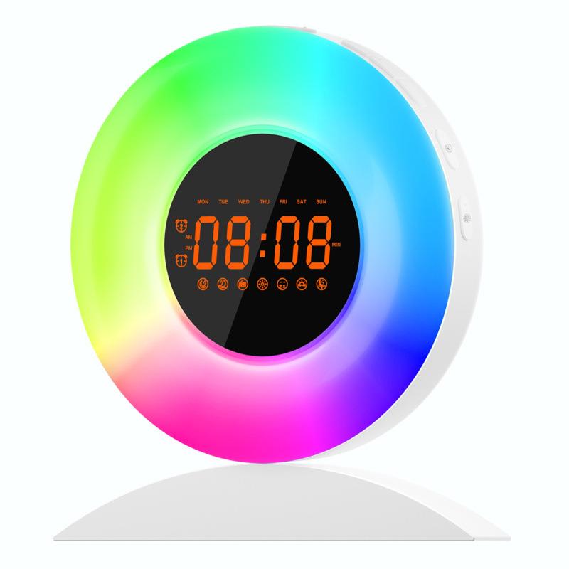 新款创意自然日出唤醒灯闹钟LED幻彩多功能模拟日落音乐睡眠台灯