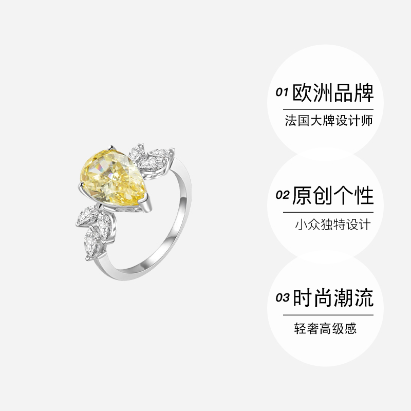 【自营】leqiyuan黄钻戒指女轻奢小众设计轻奢高级感超闪纯银欧美 - 天猫国际自营全球超级店
