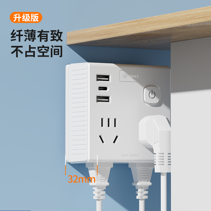 插座转换器多功能86面板1转四转换插头usb家用床头厨房插排插线板 - 国际电工工厂直销店