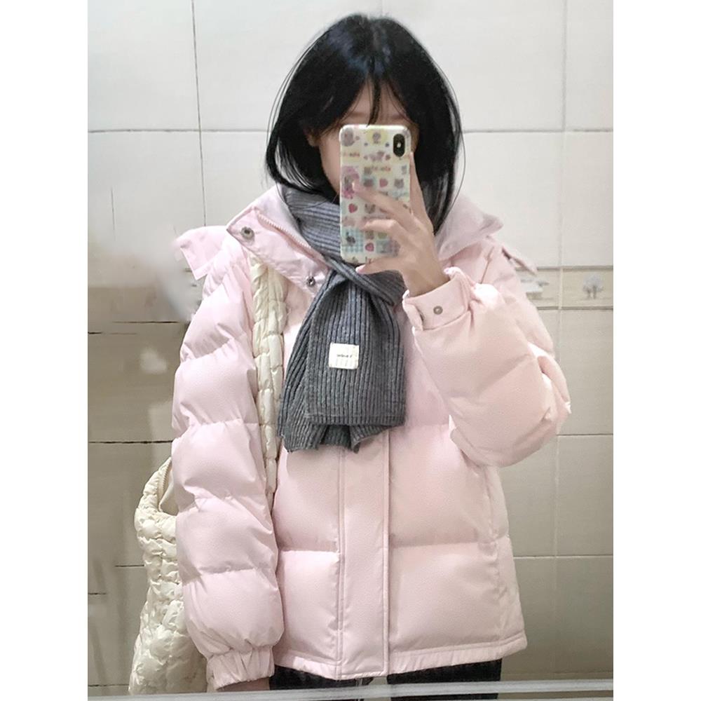 您的位置:他他商城  >   >  中戏粉色羽绒棉服女短款冬季新款连帽加厚立领情侣款宽松棉服外套