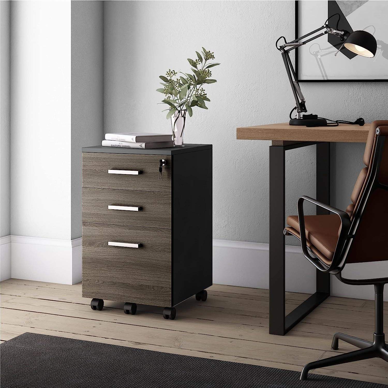 办公室文件柜3 抽屉木质打印机支架,可存放A4尺寸/法律文件文件夹
