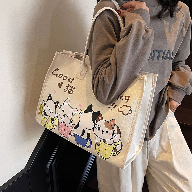 可爱猫咪帆布包包女2025新款大容量手提休闲单肩妈咪包百搭托特包 - MiaoMiao私人定制女包