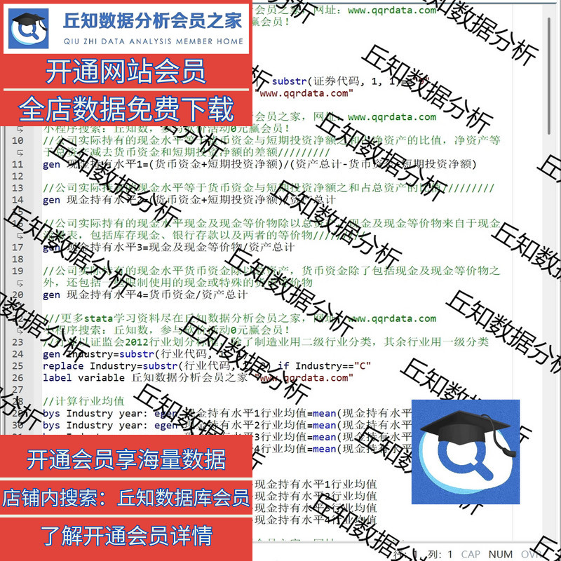 超额现金持有水平2024-2000上市公司数据stata计算代码过程Excel - 丘知数据分析官方店