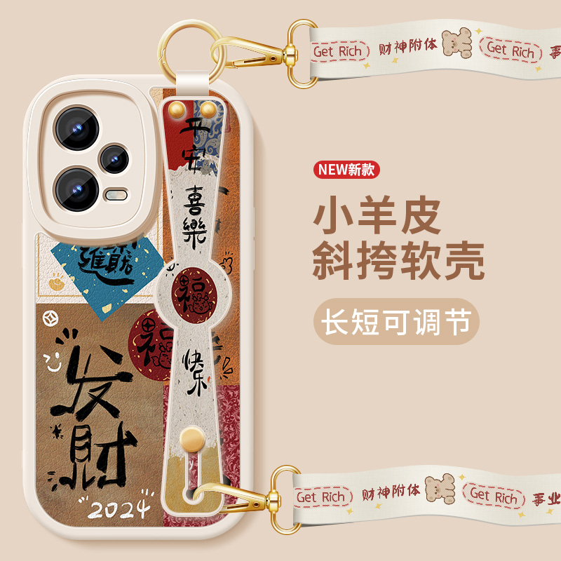 适用红米note12手机壳note12pro+新款女发财好运12rpro背带斜挎支架挂绳12turbo小羊皮12tpro硅胶软12r保护套 - 御畅数码旗舰店