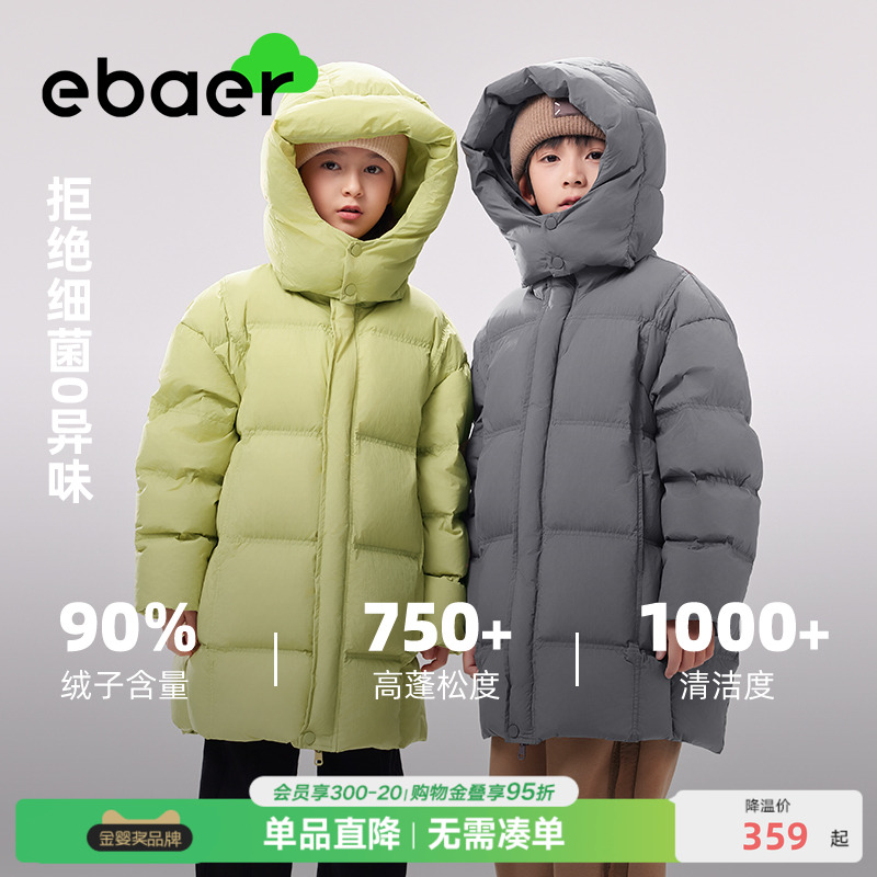EBAER童装儿童羽绒服中长款加厚2025冬季新款男女童三防冬装外套