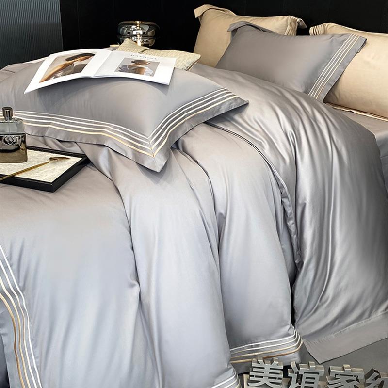 美谊家纺高级感绣线被套罩纯棉四件套全棉100S长绒棉床单床上用品 - tb6356165459