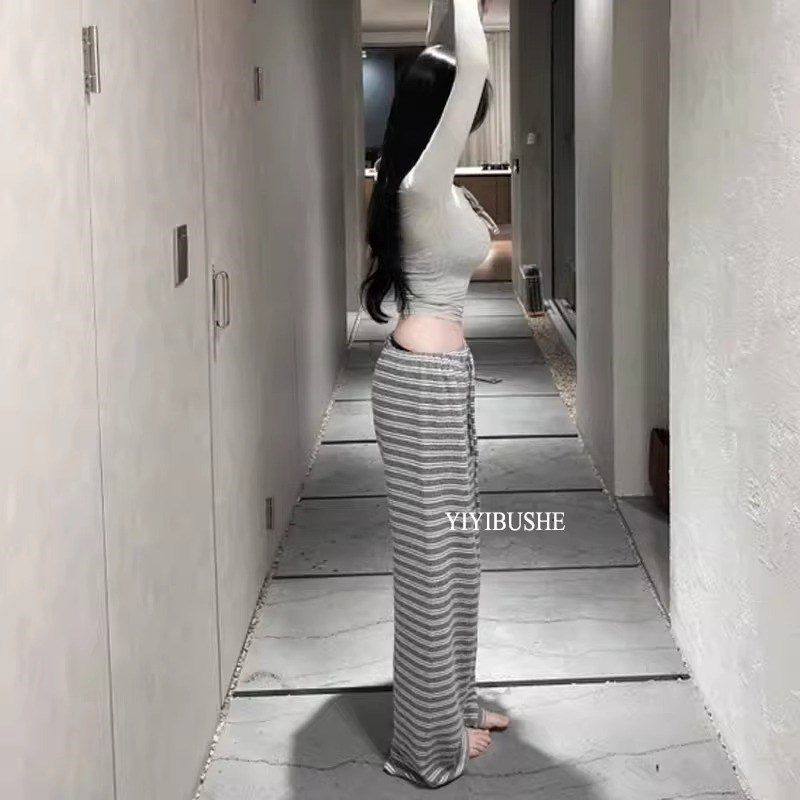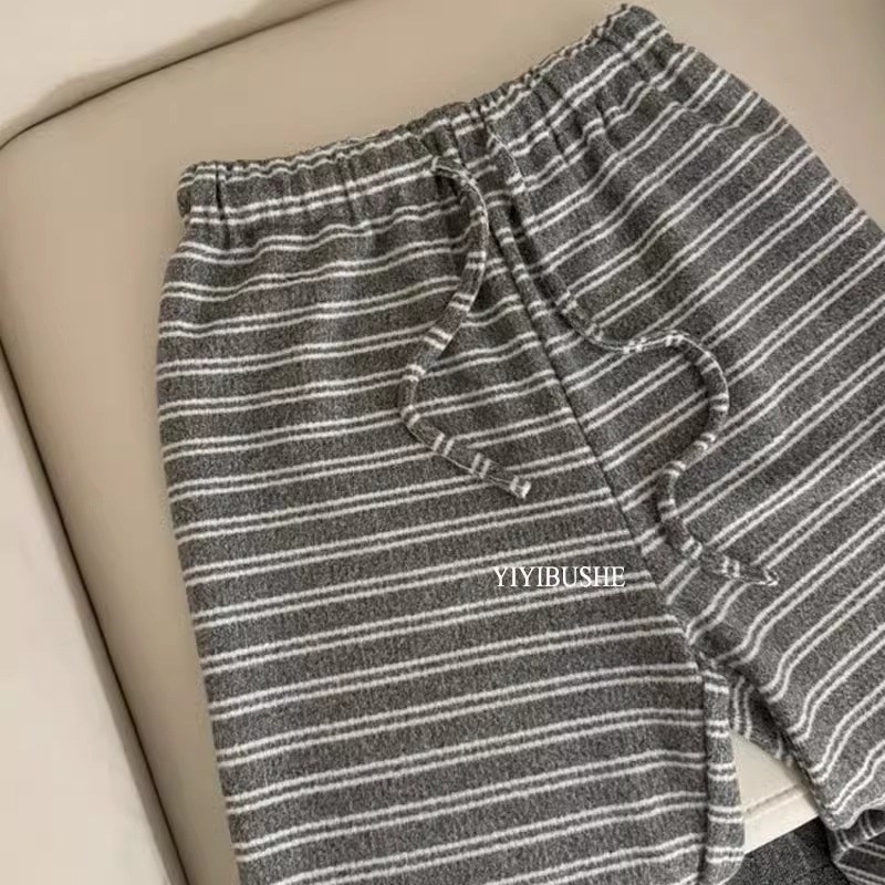 速发裤糯磨毛灰色春纹软早条宽松慵懒遛弯休闲阔腿裤直筒拖地糯米 - 辉雄商贸
