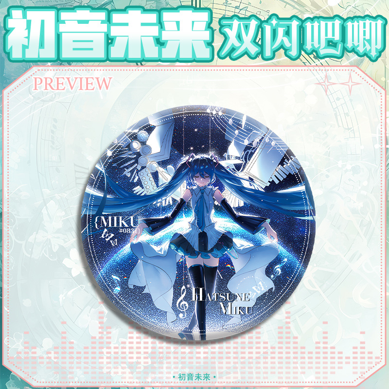 初音未来周边徽章MIKU银葱双闪吧唧马口铁二次元游戏动漫挂饰胸章 - 绘星辰