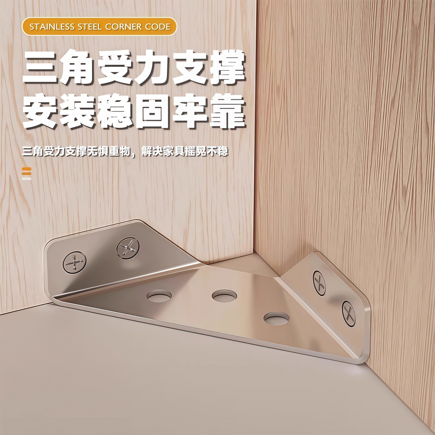 您的位置:他他商城  >   >  不锈钢角码90度直角加厚家具床桌凳椅子腿三角面加固定器铁片配件