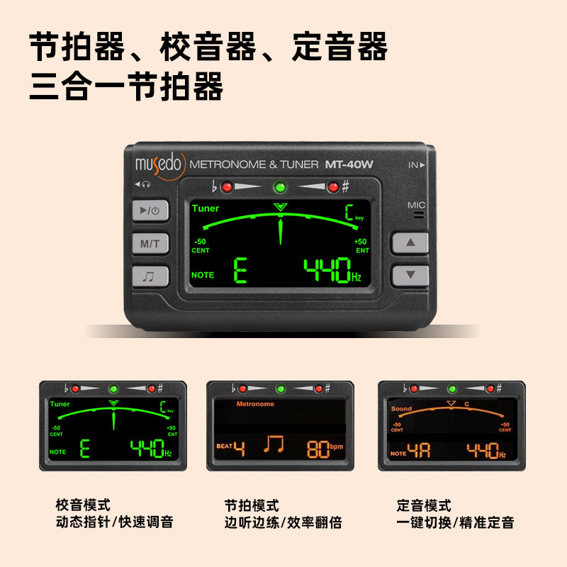小天使管乐调音器MT-40W校音器长笛/萨克斯/小号笛子定音器节拍器
