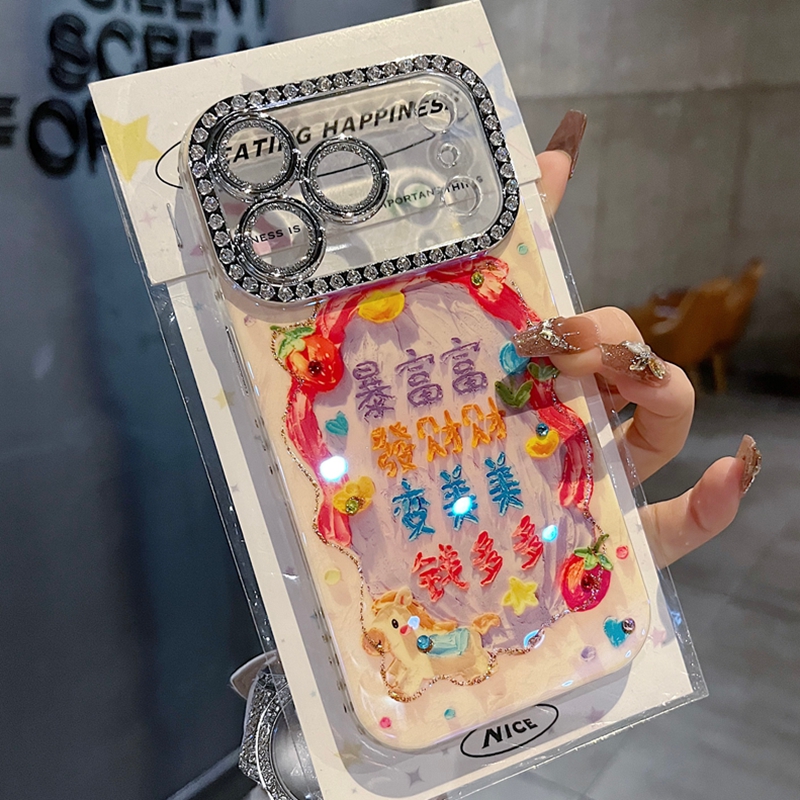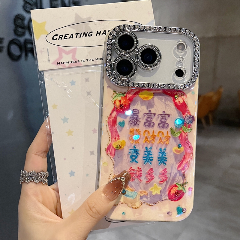 您的位置:他他商城  >   >  适用苹果系列iPhone17新款手机壳14promax16promax个性文字暴富富15promax全包满钻精孔镜框防摔时尚感保护套