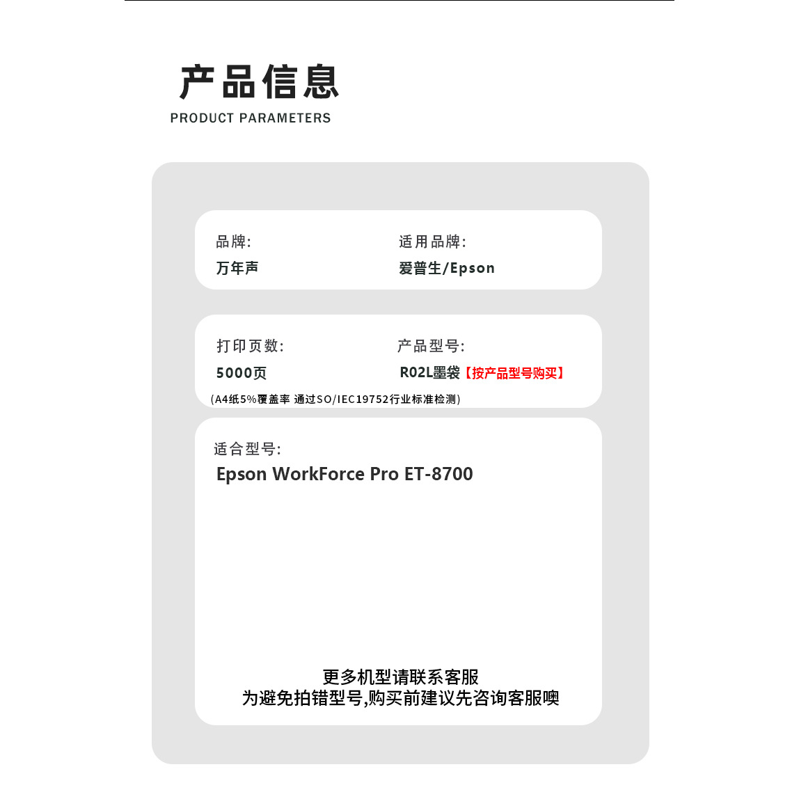 您的位置:他他商城  >   >  适用爱普生R02L墨盒Epson WorkForce Pro ET-8700彩色喷墨多功能一体打印机墨水盒 颜料墨水墨袋