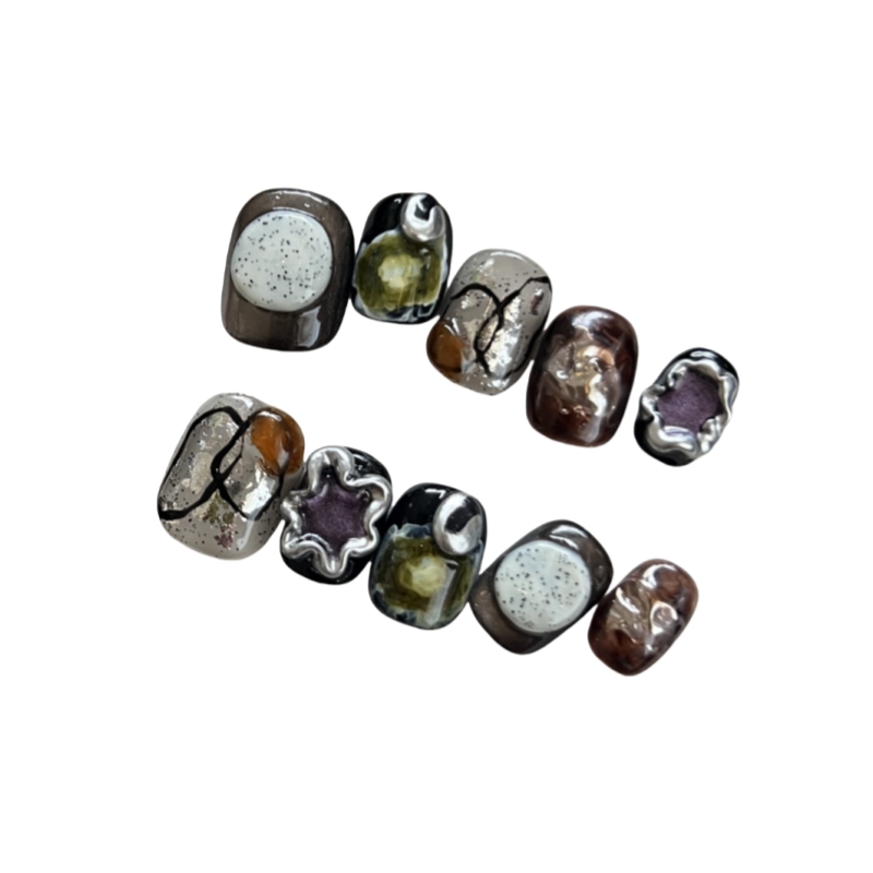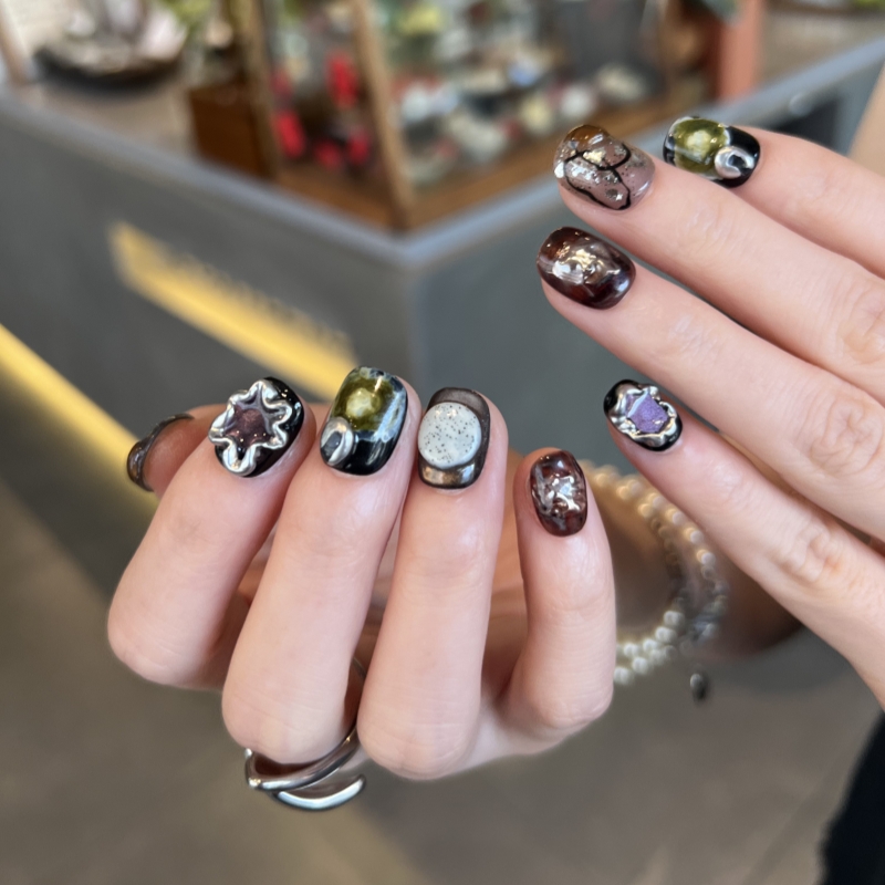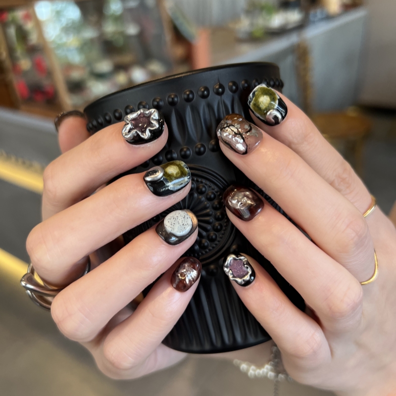 HESASA|原创设计立体造型焦糖色短款美甲【克拉克】纯手工穿戴甲 - HESASA NAIL