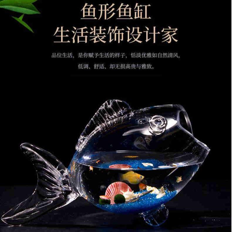 鱼型玻璃鱼缸透明玻璃鱼形鱼缸金鱼缸家中装饰品风水招财鱼形摆件 - 弗贝思水族馆