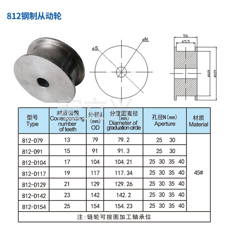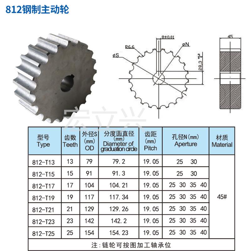 宏牌812钢制齿轮T19R21N25牙不锈钢链板配套链轮主从动轮驱动惰被 - 如锦庄商城