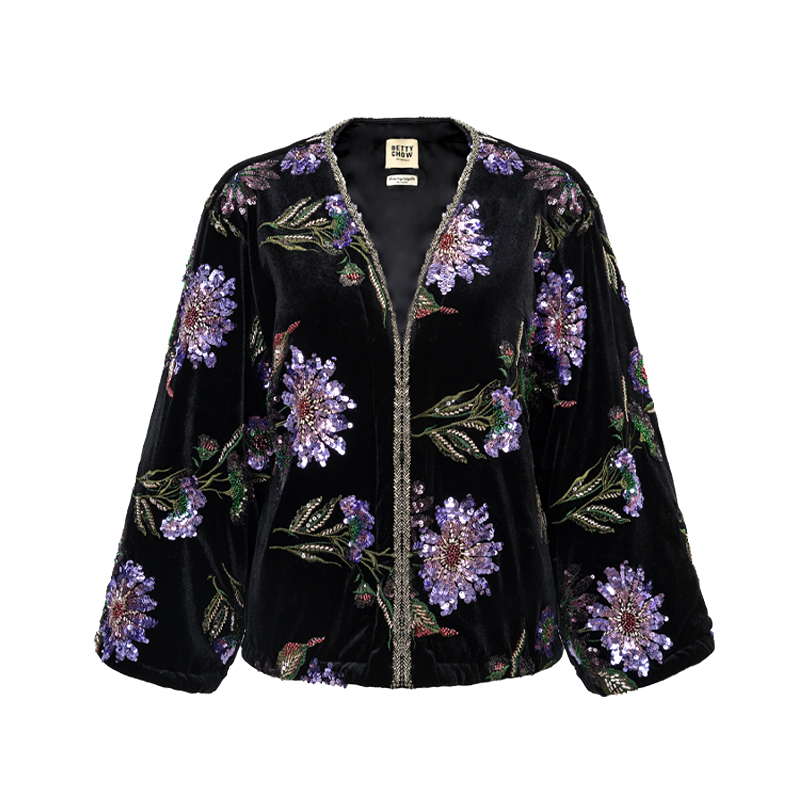 Bettychow 新中式 国风紫色刺绣珠片黑丝绒拜年棉服时髦新年外套 - Betty Chow