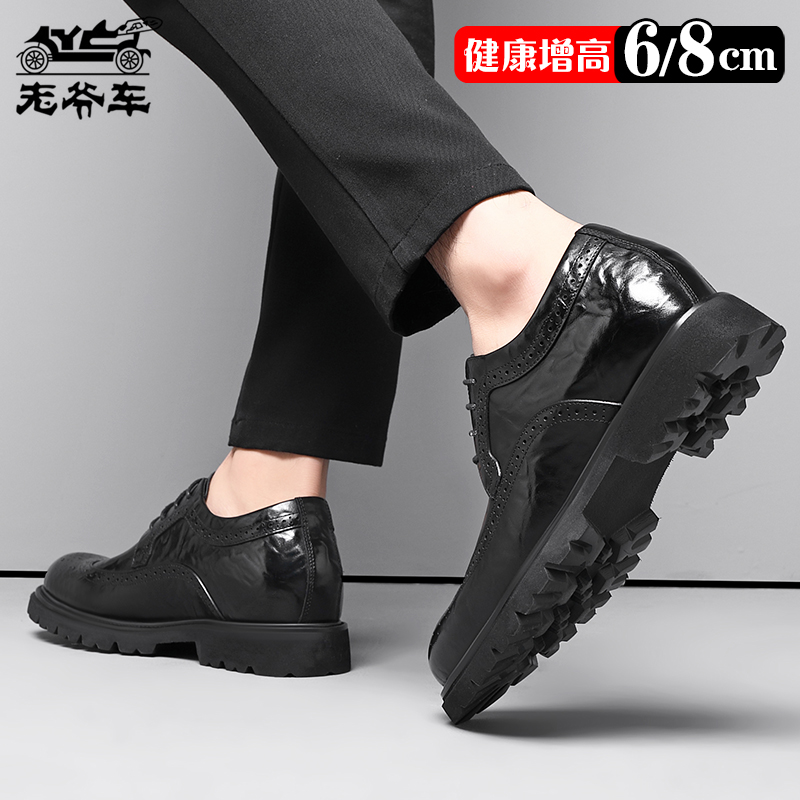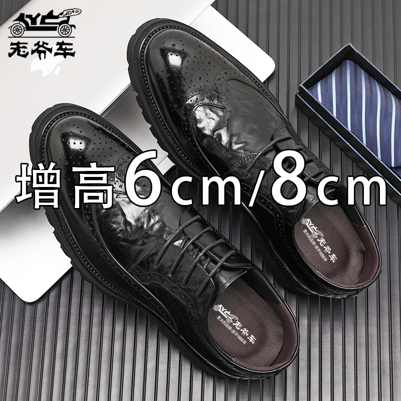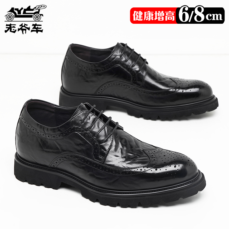 老爷车皮鞋男雕花布洛克商务正装内增高德比鞋真牛皮主持人婚礼鞋 - 老爷车康贝专卖店