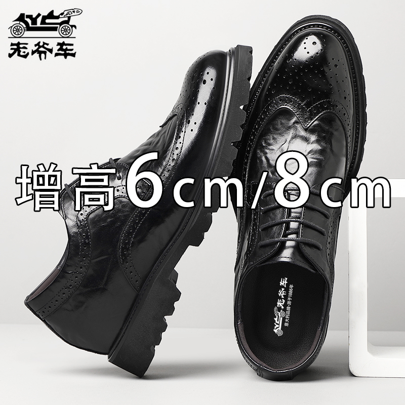 老爷车皮鞋男雕花布洛克商务正装内增高德比鞋真牛皮主持人婚礼鞋