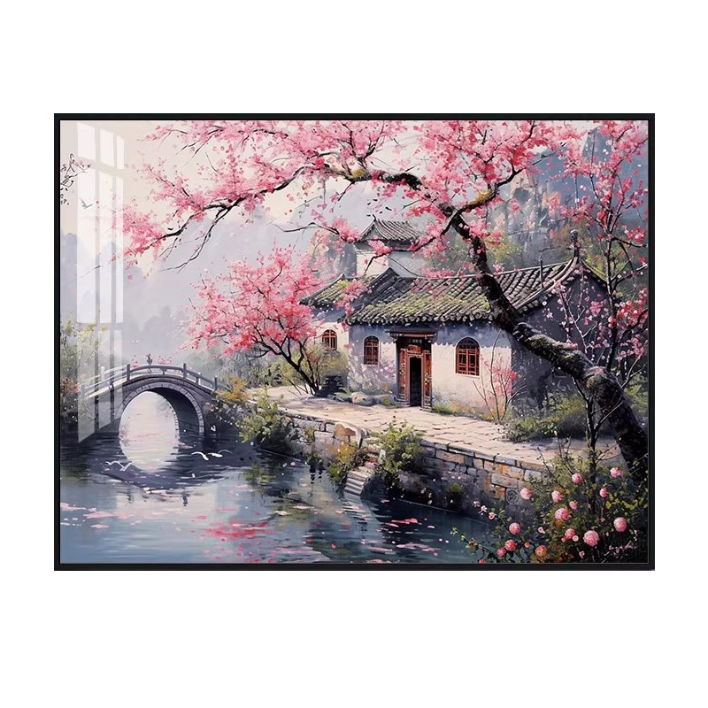 5d江南水乡钻石画方钻满钻客厅中国风景点粘砖贴钻十字绣小桥流水 - 钻石画方钻正品店