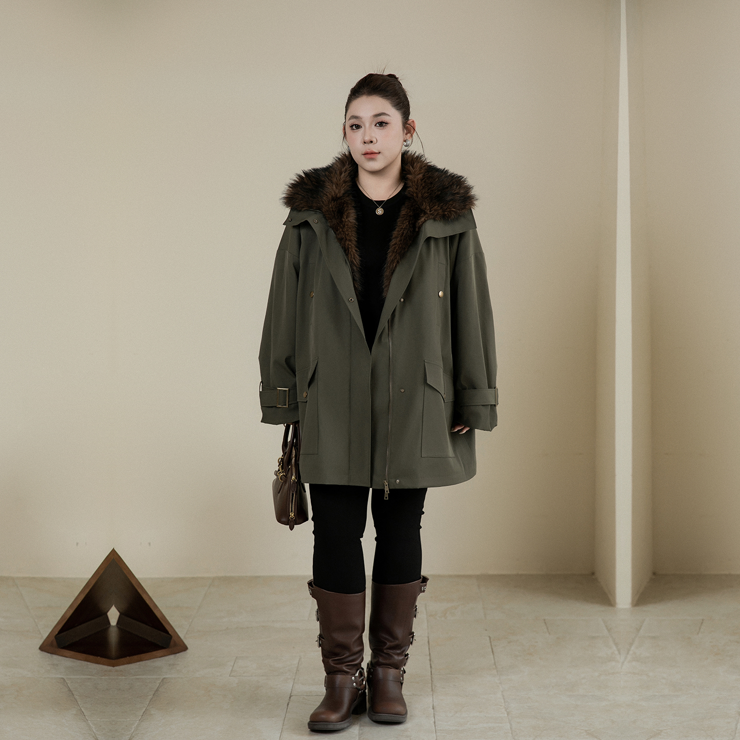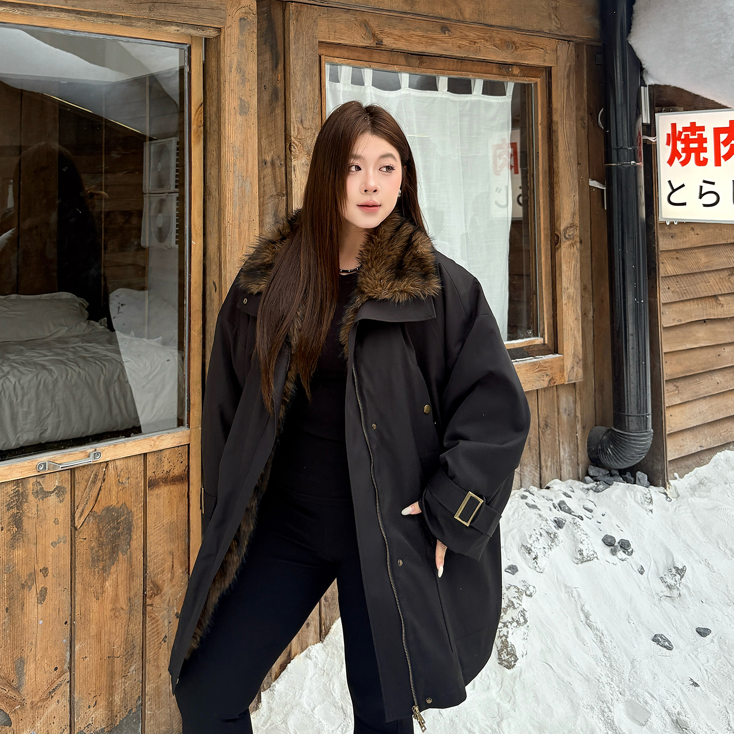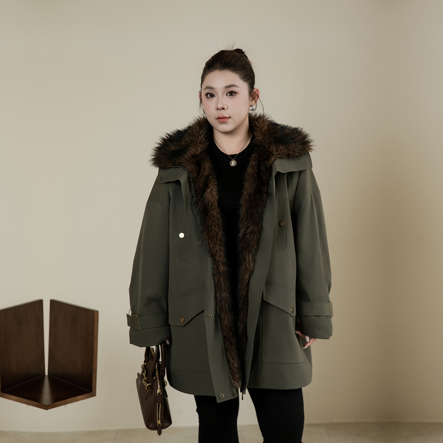 大码女装派克服大毛领加绒加厚200斤冬胖mm宽松保暖工装大衣外套 - 心存真大码女装定制