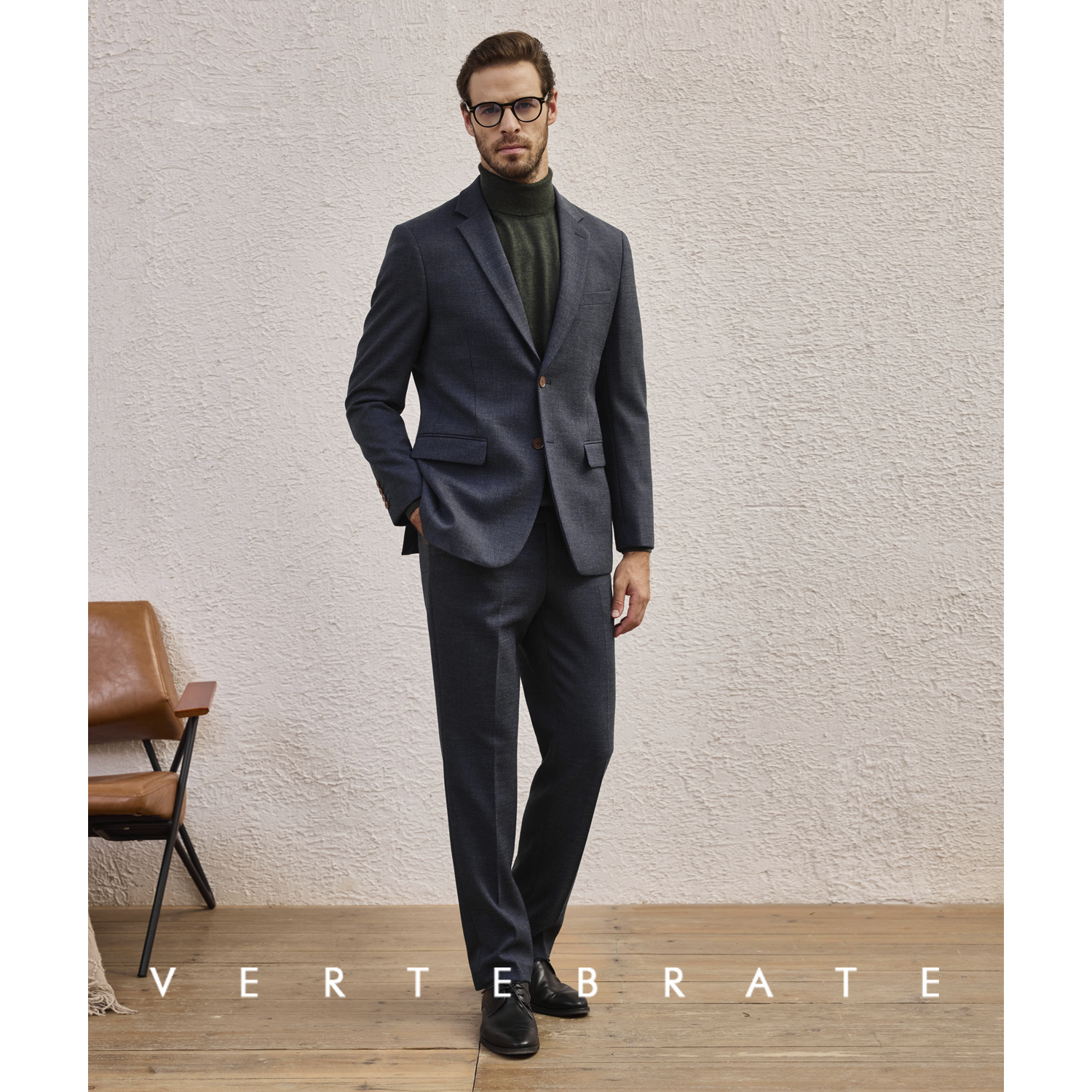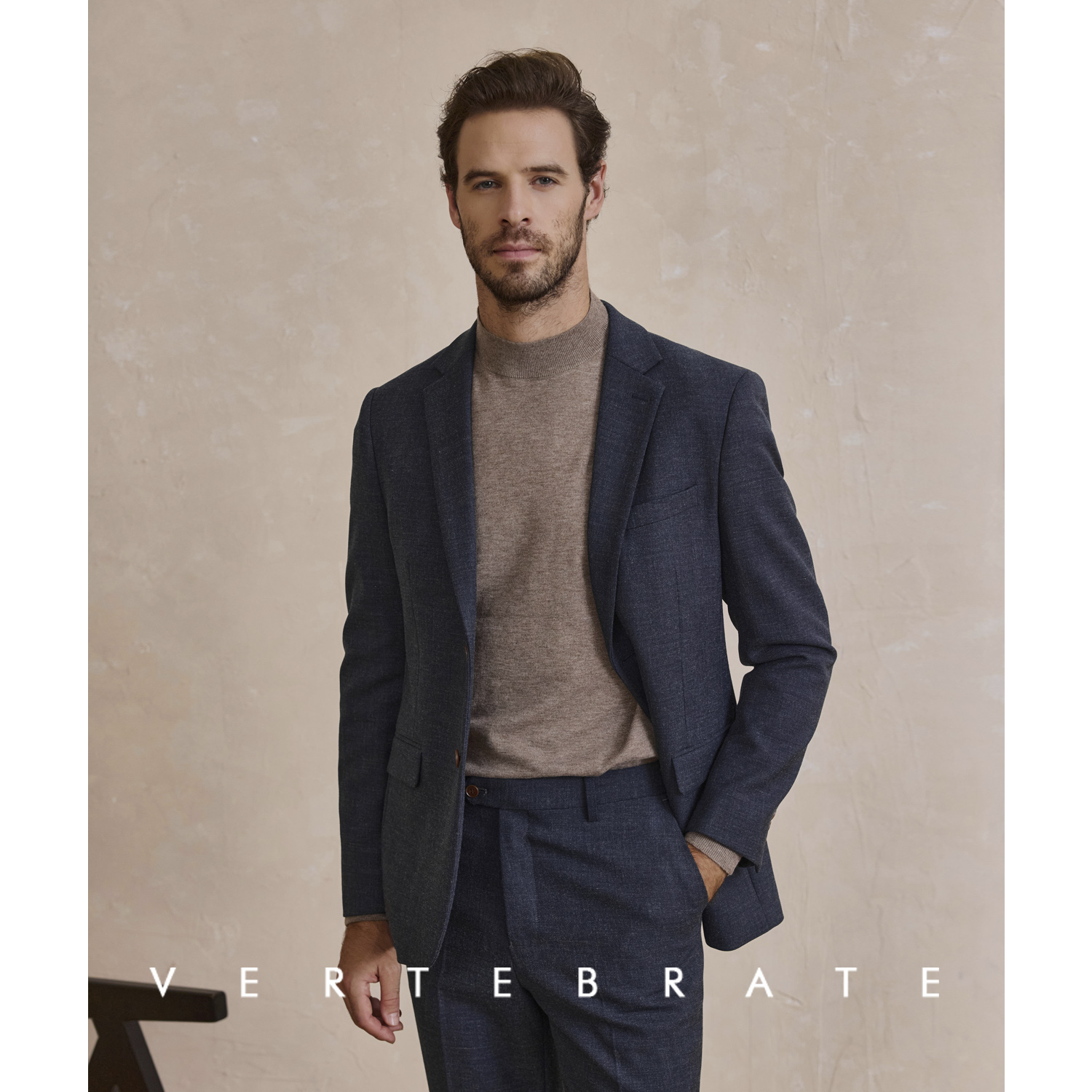 脊椎动物男装秋冬仿羊毛质感深蓝混色休闲商务男士西装西裤套装 - 脊椎动物男装VERTEBRATE