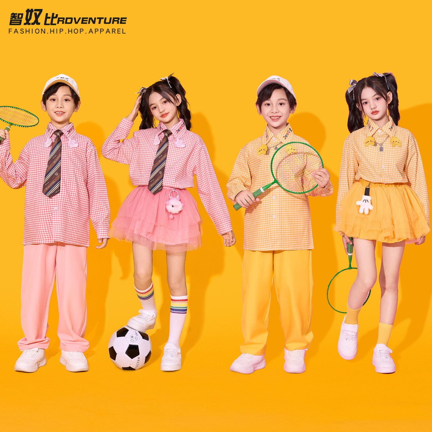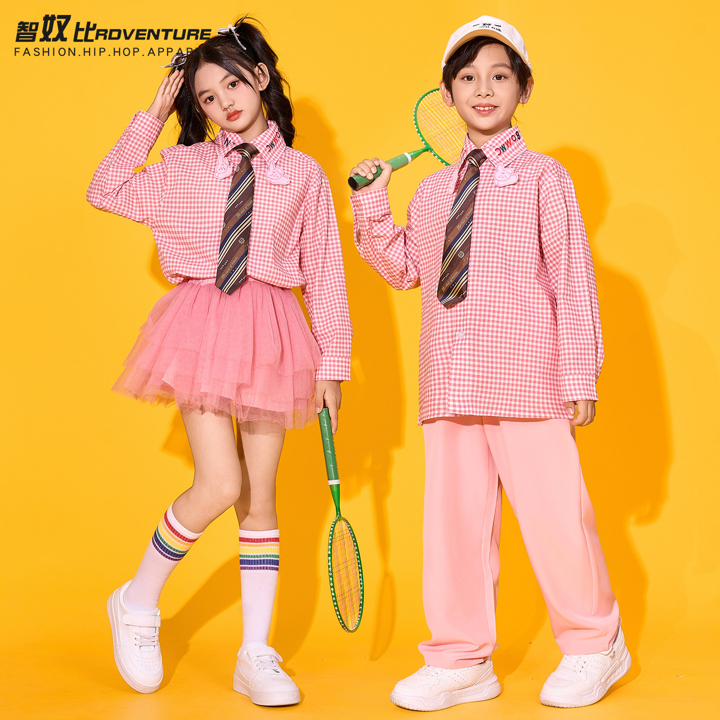 儿童运动会服装秋季格子衬衫班服小学生开幕式表演服啦啦队演出服 - 智奴比旗舰店