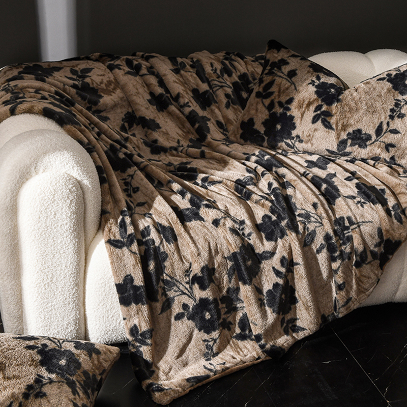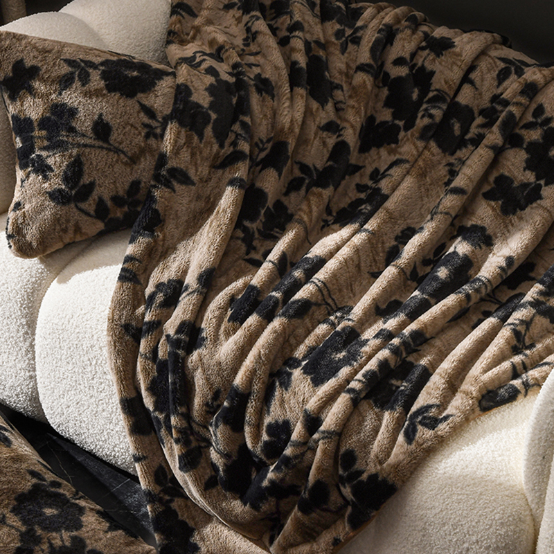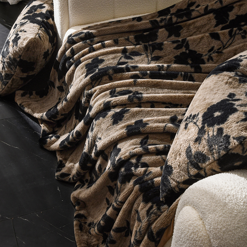 A类美拉德轻奢兔毛绒毛毯牛奶绒床上盖毯加绒加厚毯子秋冬季黑色 - 栖舍家居旗舰店