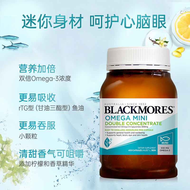 澳洲澳佳宝柠檬无腥味鱼油小粒高浓度深海鱼软胶囊进口400粒/瓶