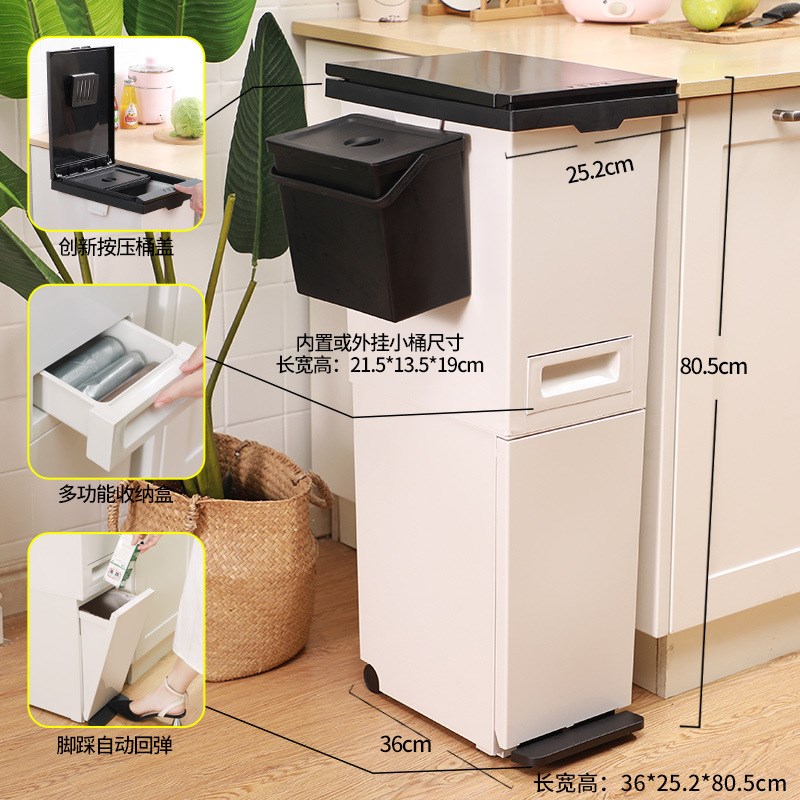 双层垃圾分类垃圾桶家用厨房大容量干湿分离日式按压脚踏新品 - 运眉设计实业