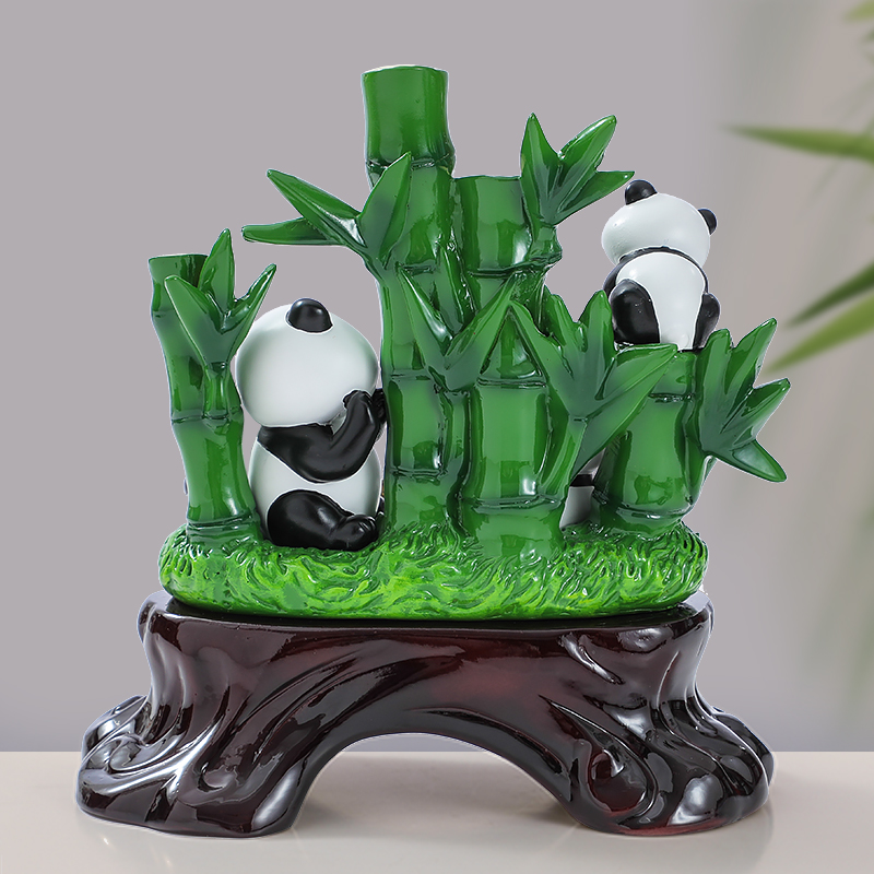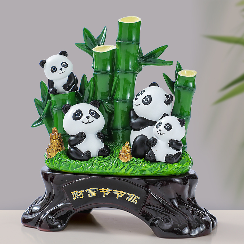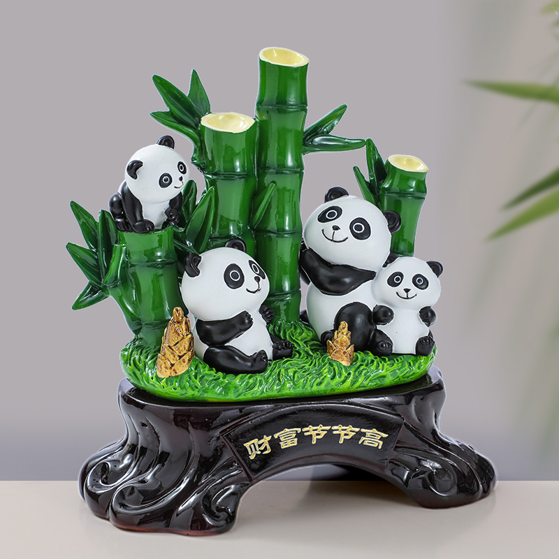 财富节节高富贵竹子摆件可爱熊猫工艺礼品乔迁新居客厅酒柜装饰品