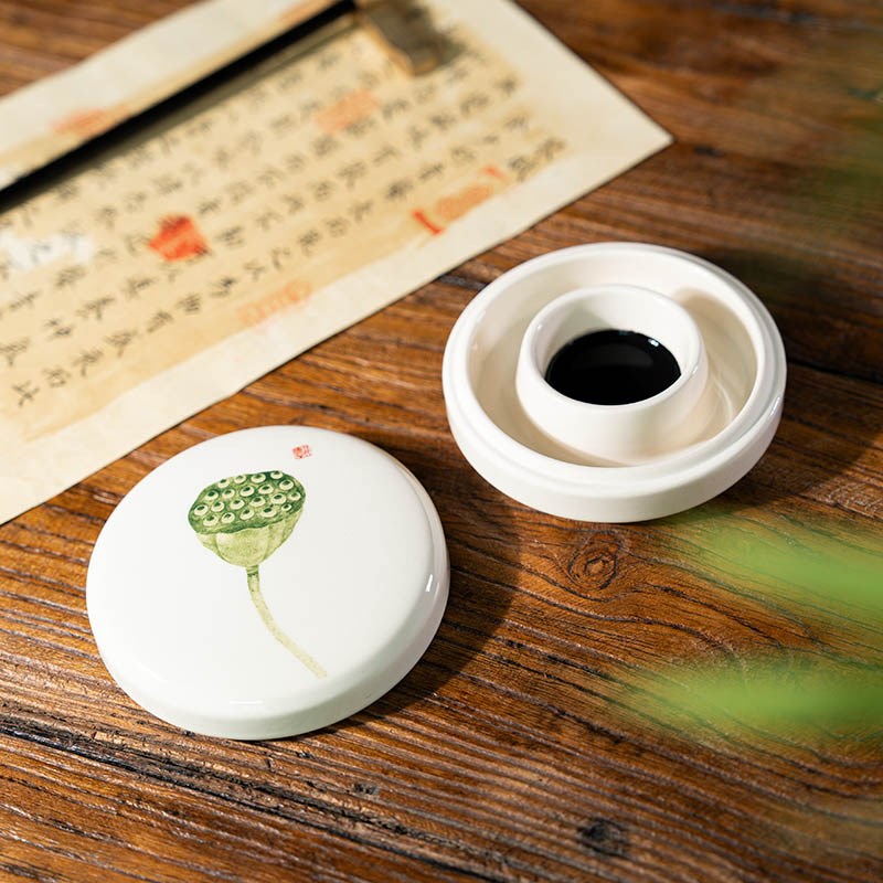 您的位置:他他商城  >   >  中国风陶瓷火锅砚台双圈带盖创意荷花文创文房防蒸发X书法墨池墨