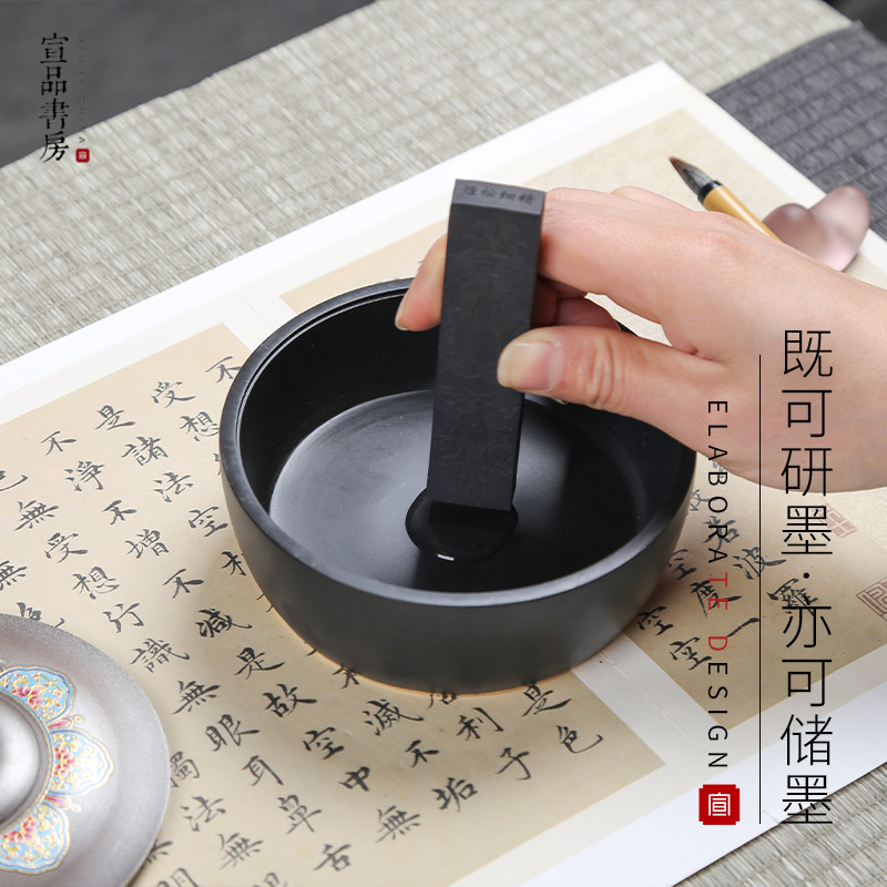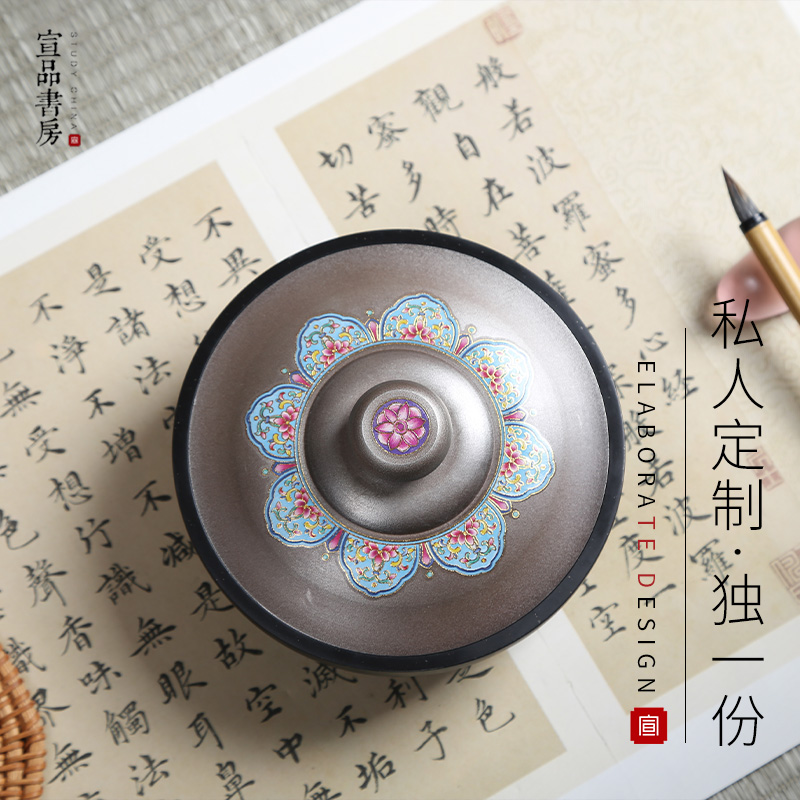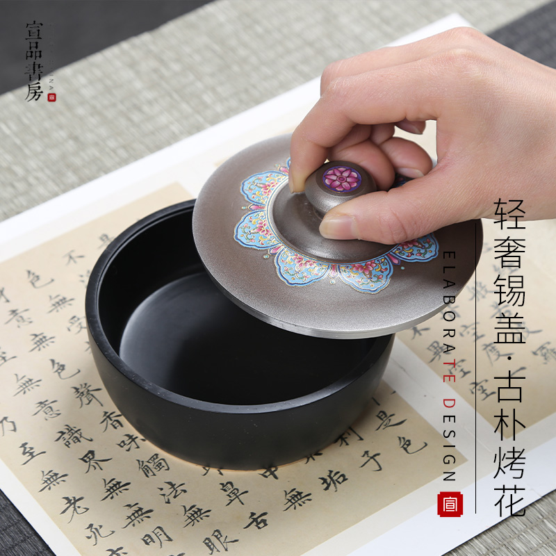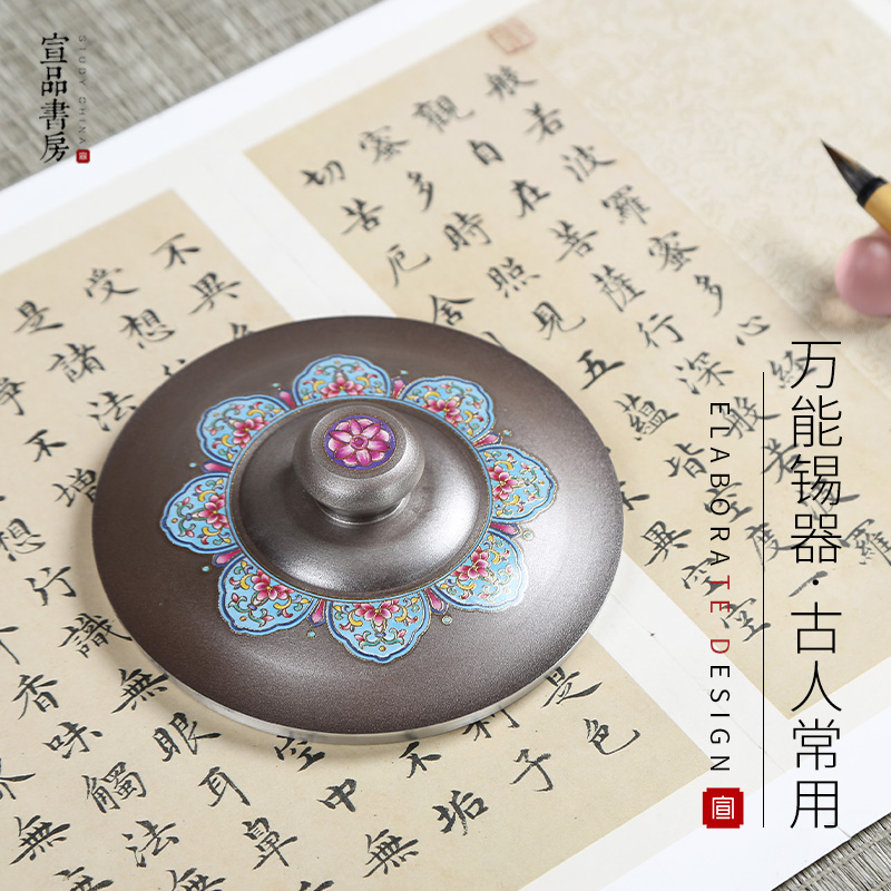 宣品书房吉祥锡盖墨海文房四宝砚台宣砚圆形砚带盖不易干墨书法国画练字小楷多功能创意便携砚台高档墨池 - 宣品书房旗舰店