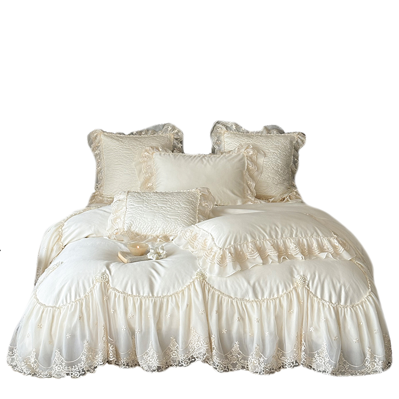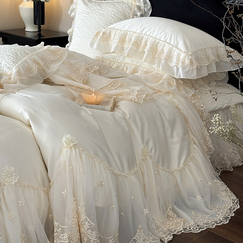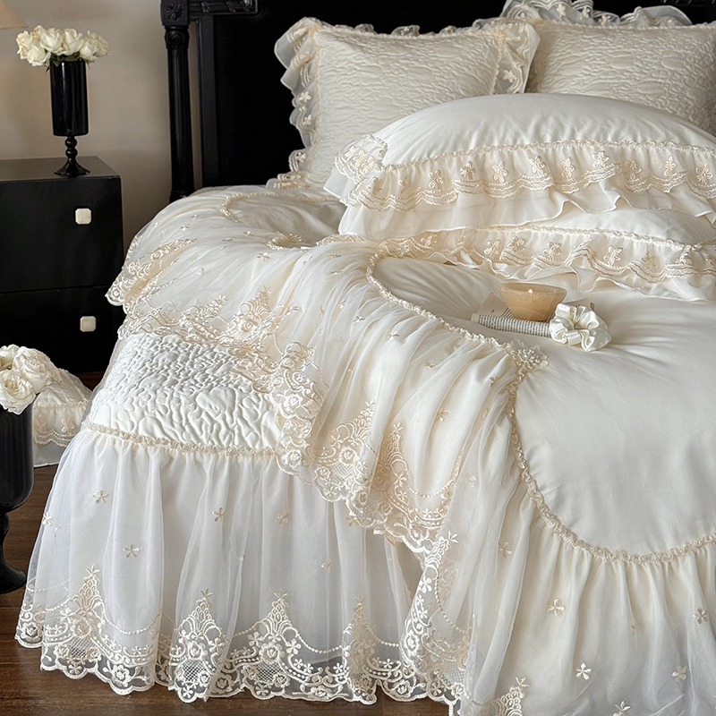 法式浪漫全棉长绒棉四件套公主风蕾丝花边被套高级感夹棉加厚床盖 - 永晟家居 YSのHome