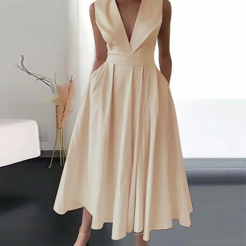Sleeveless waist insertion pocket dress 女无袖收腰插袋连衣裙