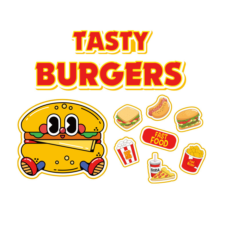美式中国汉堡店墙面装饰网红打卡点披萨炸鸡餐饮贴纸广告海报背景