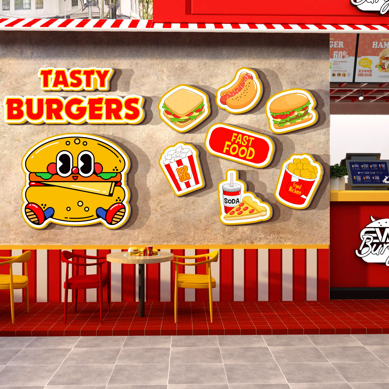 美式中国汉堡店墙面装饰网红打卡点披萨炸鸡餐饮贴纸广告海报背景 - TH童话饰界