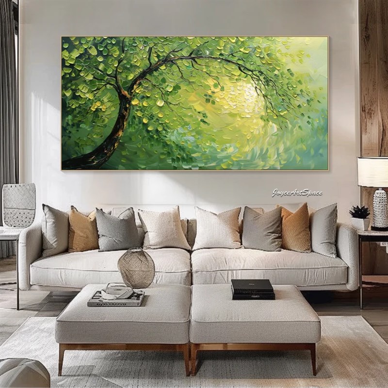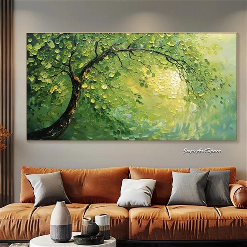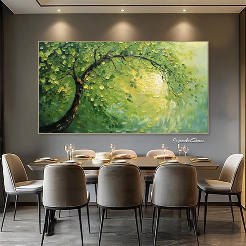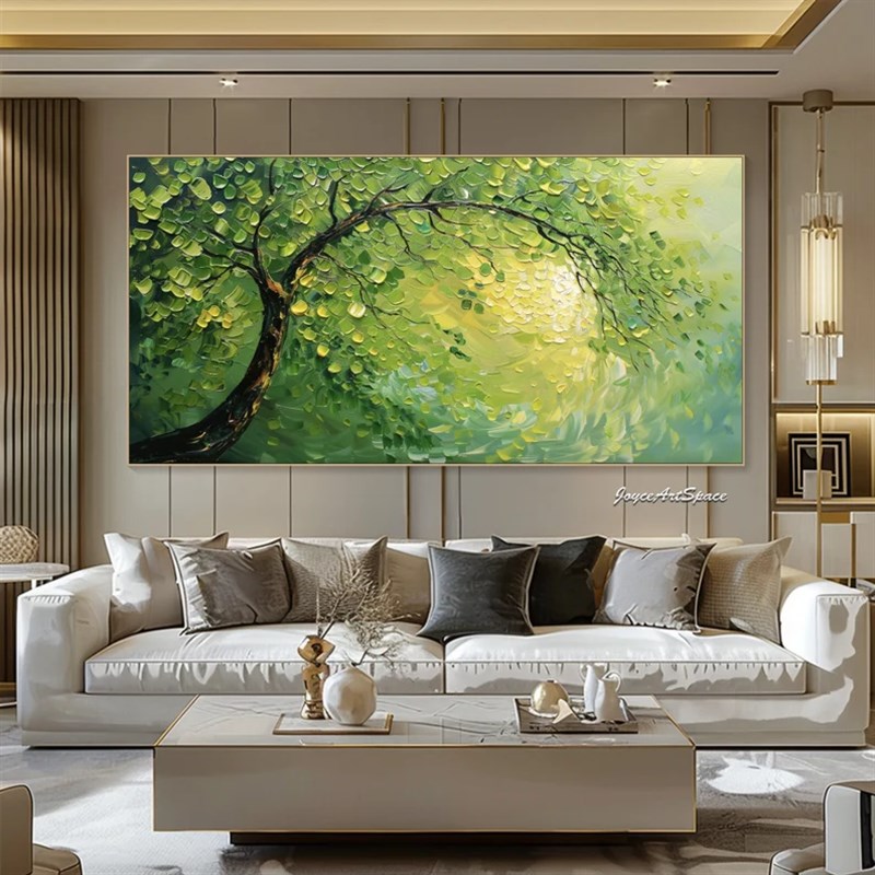 大芬村手绘e油画抽象绿色发财树肌理客厅装饰画横版办公室立体挂 - 碧鲁昊乾旗舢店企业店