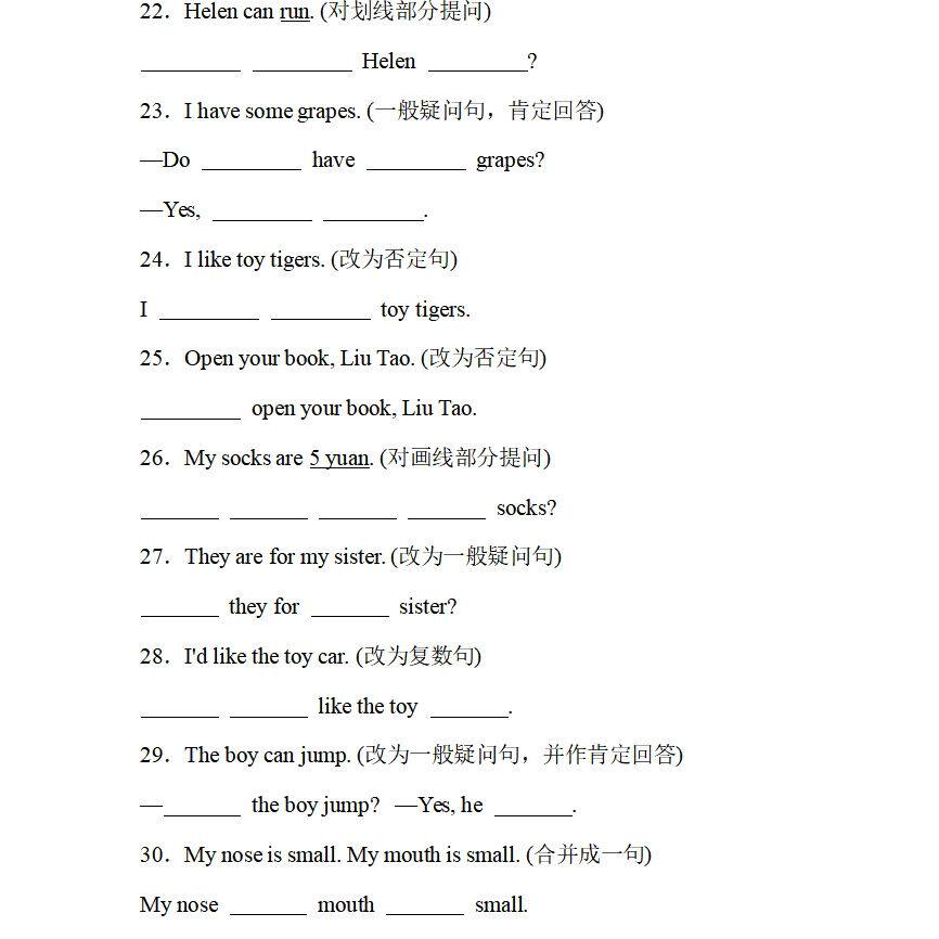 新译林版句型转换连词成句小学英语三四五六年级上下册小升初专项