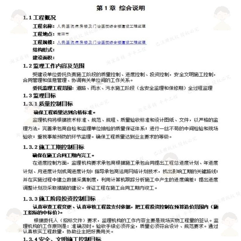 医院病房楼及门诊医技综合楼建设工程监理投方案word文件投标 - 平平工程