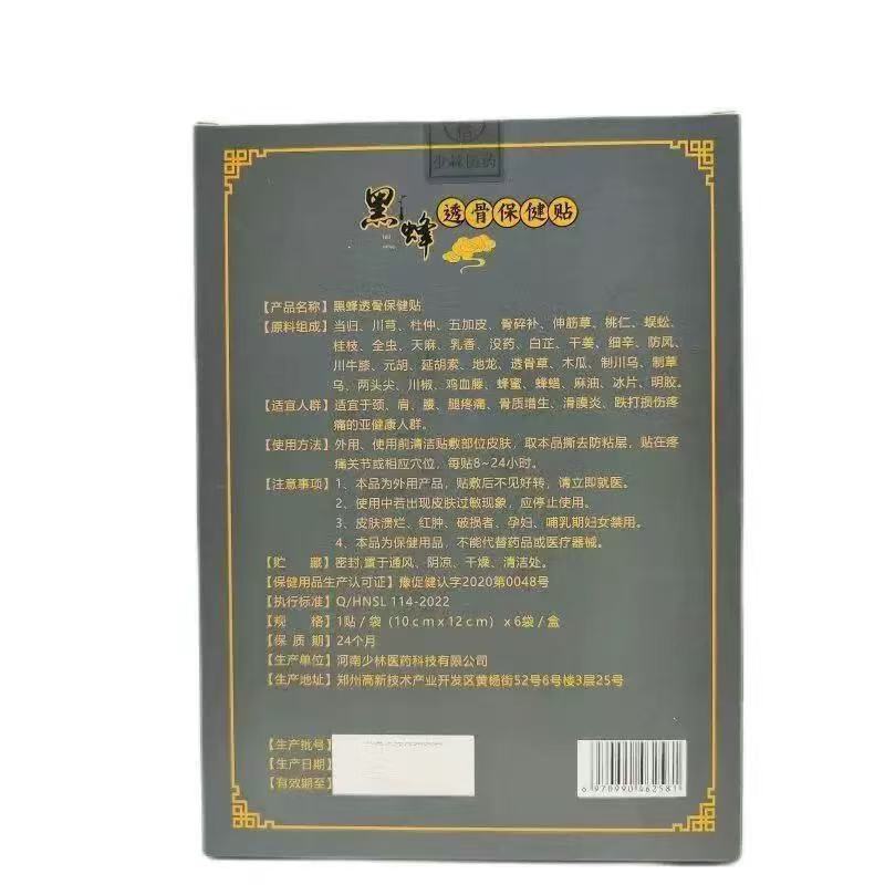 少林医药嵩岭祖师黑蜂透骨保健贴6贴/盒颈肩腰腿膝盖关节贴 - 多情鱼保健品专营店