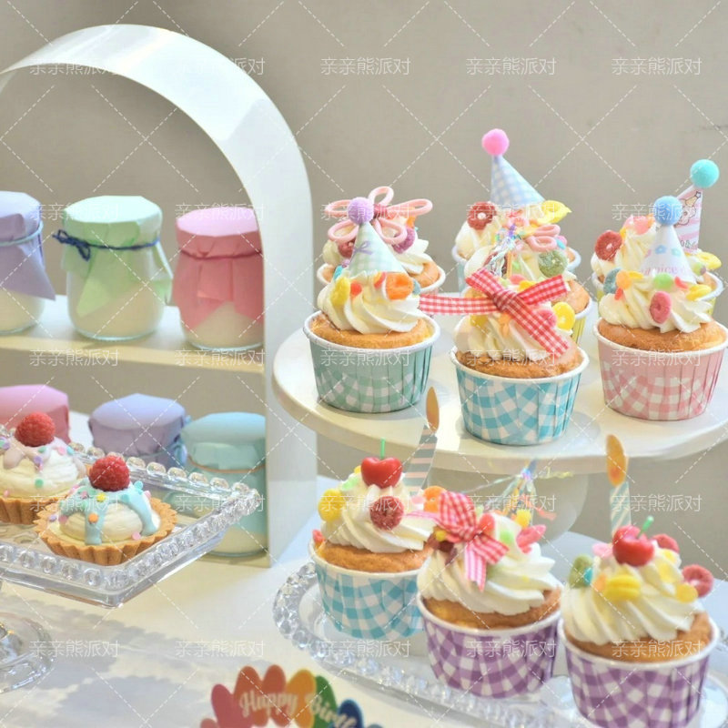 布丁花朵绑带儿童生日甜品台装饰多巴胺纸杯蛋糕插件ins小花贴纸 - 亲亲熊派对 YUN