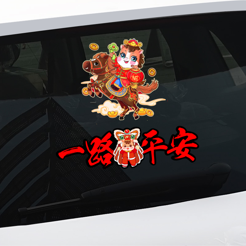 2026马年新年车贴一路平安春节过年对联汽车贴纸无痕个性创意防水 - 精光领尚者专卖店