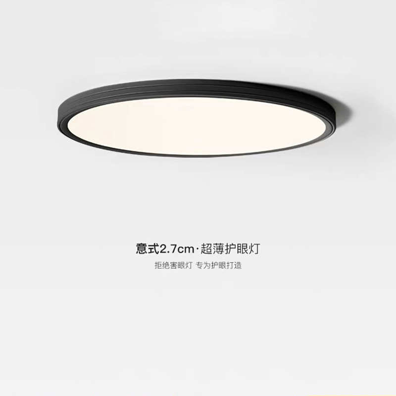 意式极简卧室吸顶灯黑色无缝隙超薄主卧房间灯护眼圆形书房吸顶灯