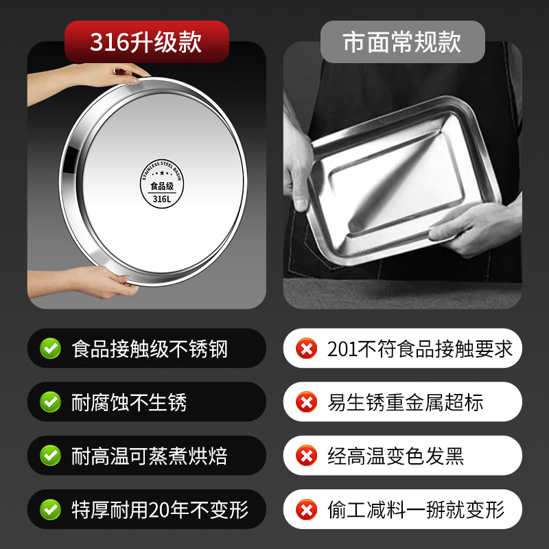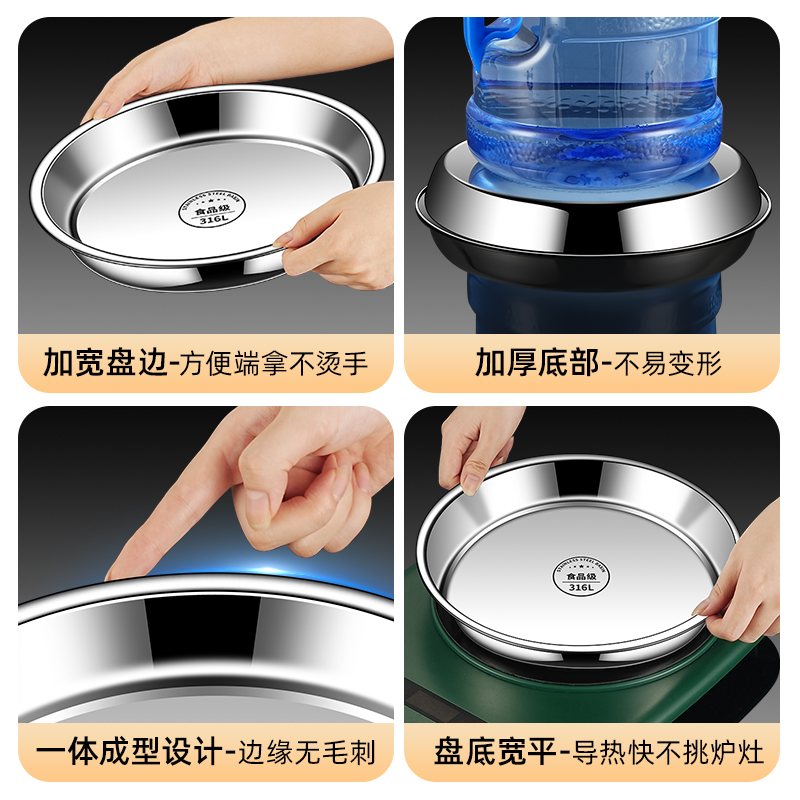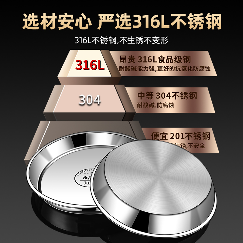 316不锈钢盘子圆盘食品级家用浅盘凉皮蒸盘圆形平底托盘菜盘碟子 - 峰册旓舰店