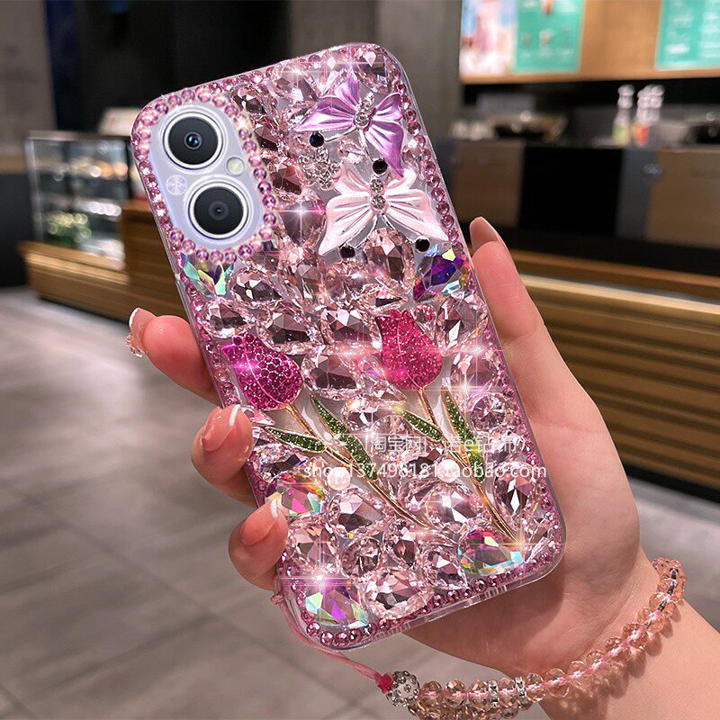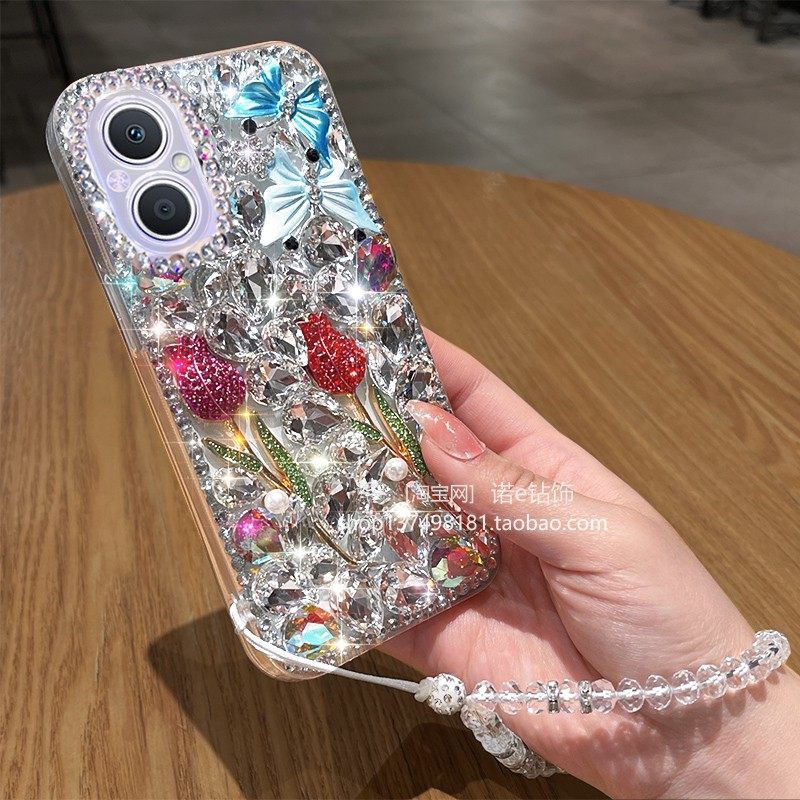 适用于oppoA97手机壳A58X玫瑰满钻A97闪钻A1Pro女A96潮A95粉钻Reno9Pro白钻A55钻A57全包A94镶钻A52A/53/Ace - 诺e钻饰