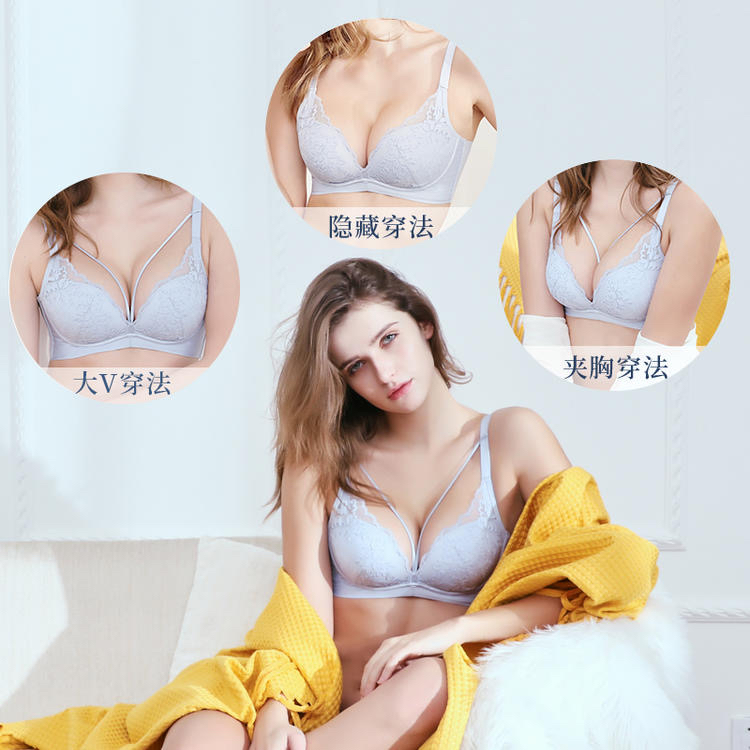 【梦之颜】亲肤云感棉模杯深V诱惑专利防滑减压肩带多种穿法无痕