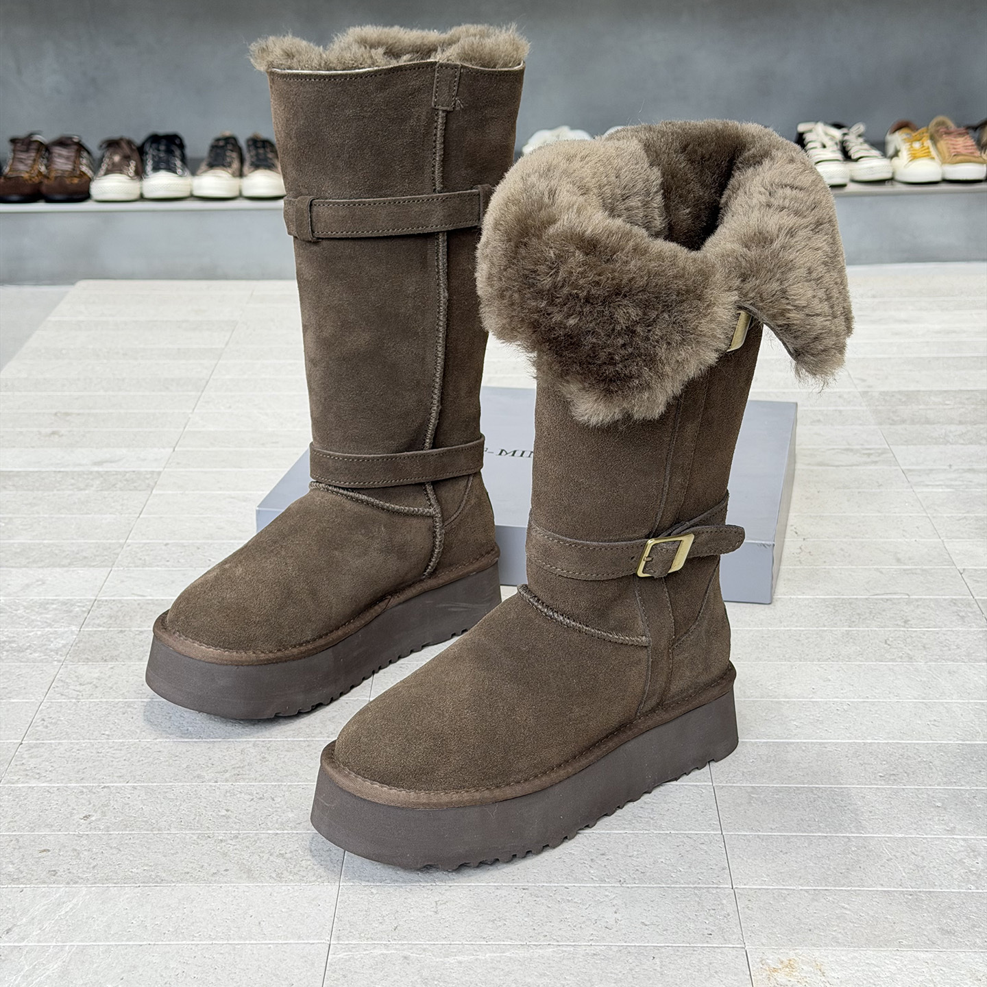 2025冬季新品高筒雪地靴女反绒皮防滑厚底不过膝加绒加厚棉鞋长靴 - 毛毛定制手工精品女鞋