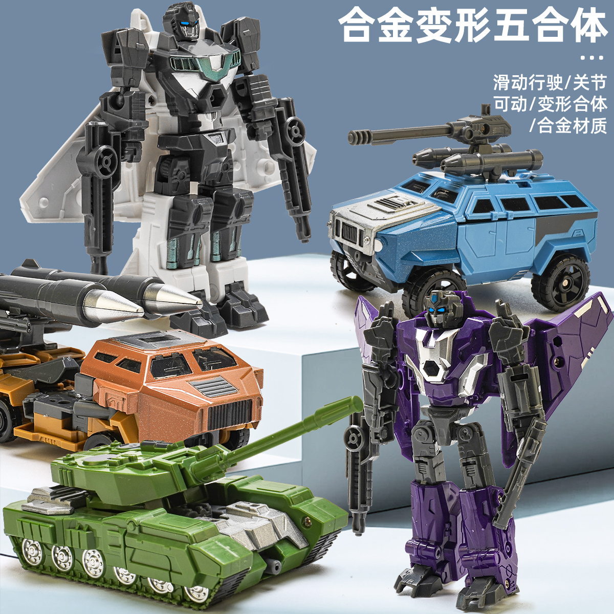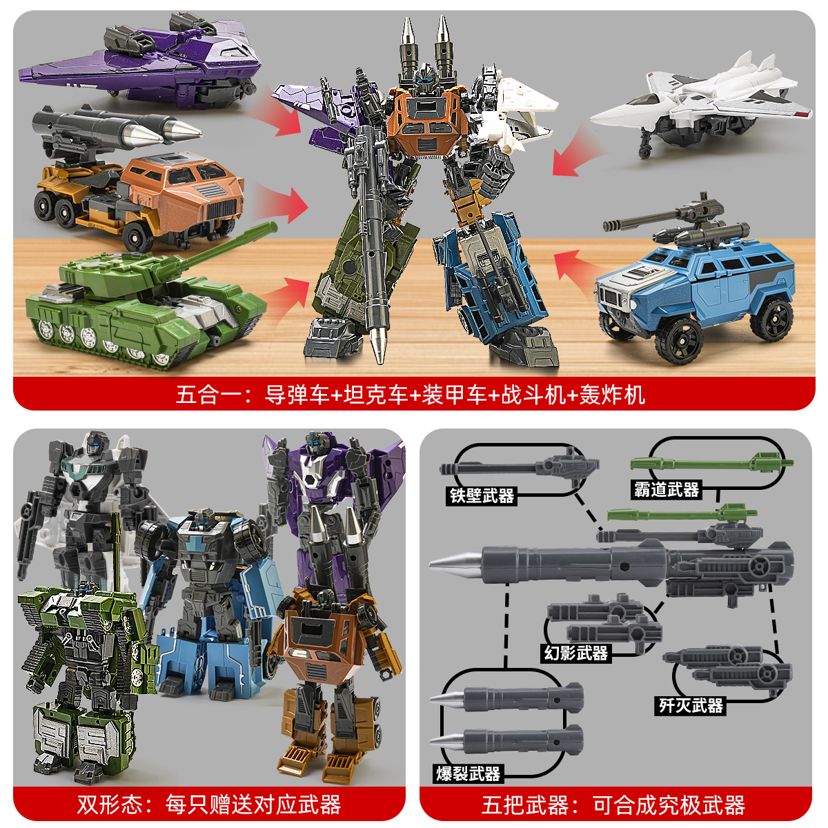 黑科智合金变形军事五合体模型武器飞机坦克儿童男孩益智车模玩具 - 黑科智母婴玩具店