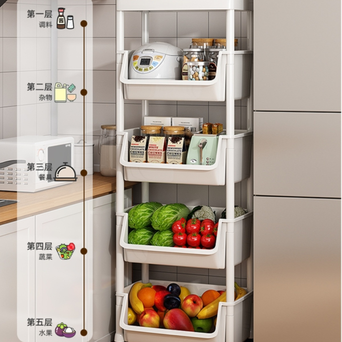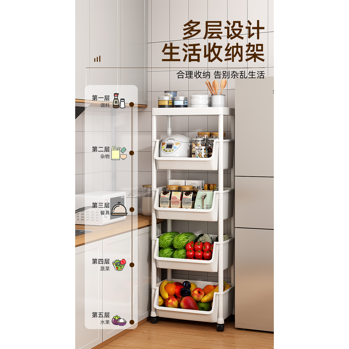 日本厨房多功能置物架可移动小推车书架多层零食收纳架 - 进口奢品家居精品店