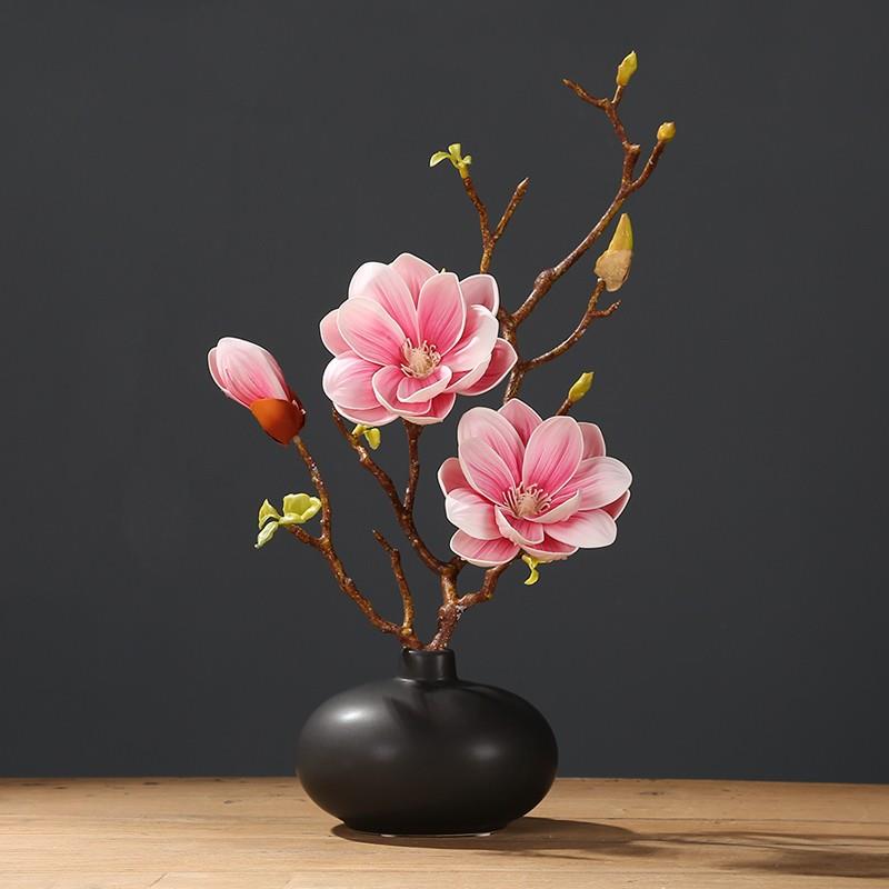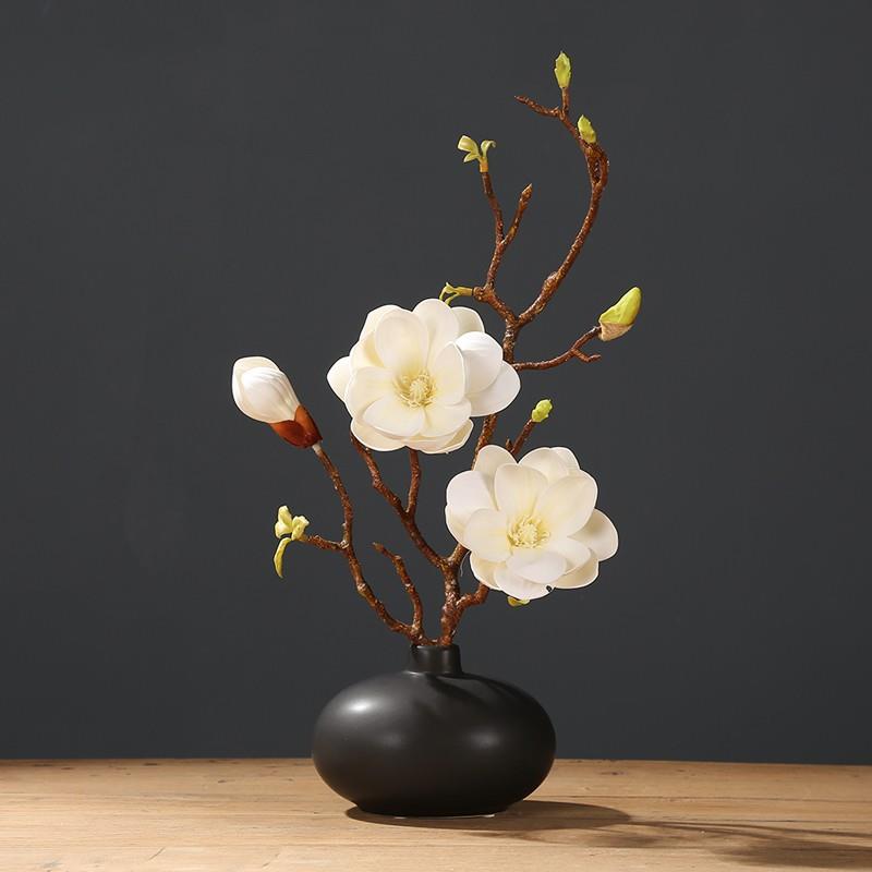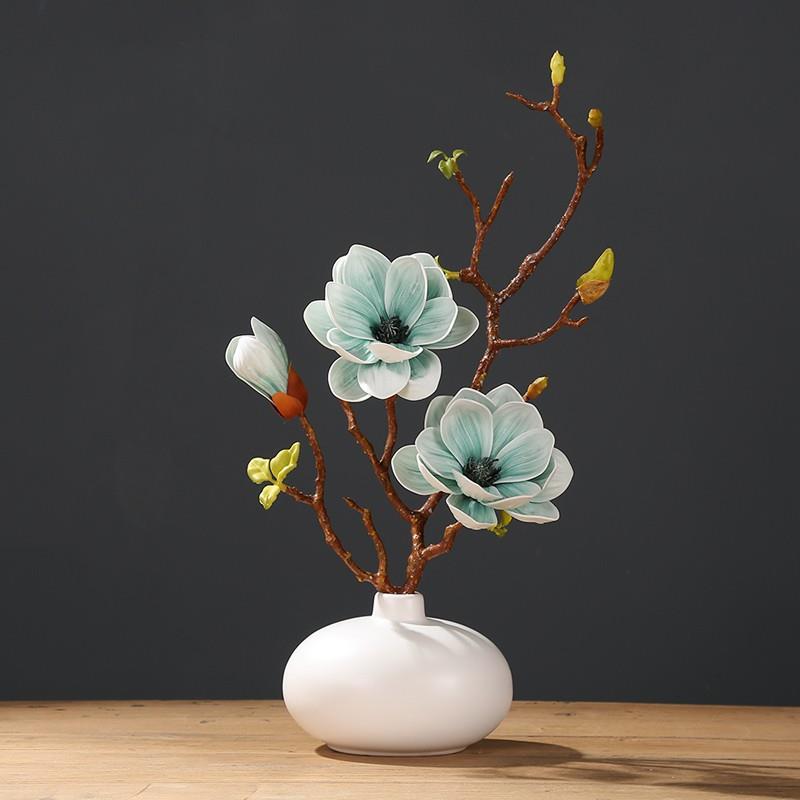 新中式仿真玉兰花套装陶瓷花瓶桌面摆放花卉高档逼真客厅假花摆件